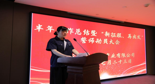 Strive for pioneers on the way forward, full of lofty sentiments to write a chapter of glory. On the evening of July 23, the company held a grand half-year work summary and "new journey, start again" pledging mobilization meeting in rende hotel, attended by 55 leaders above the department level, workshop director (supervisor) and office staff.